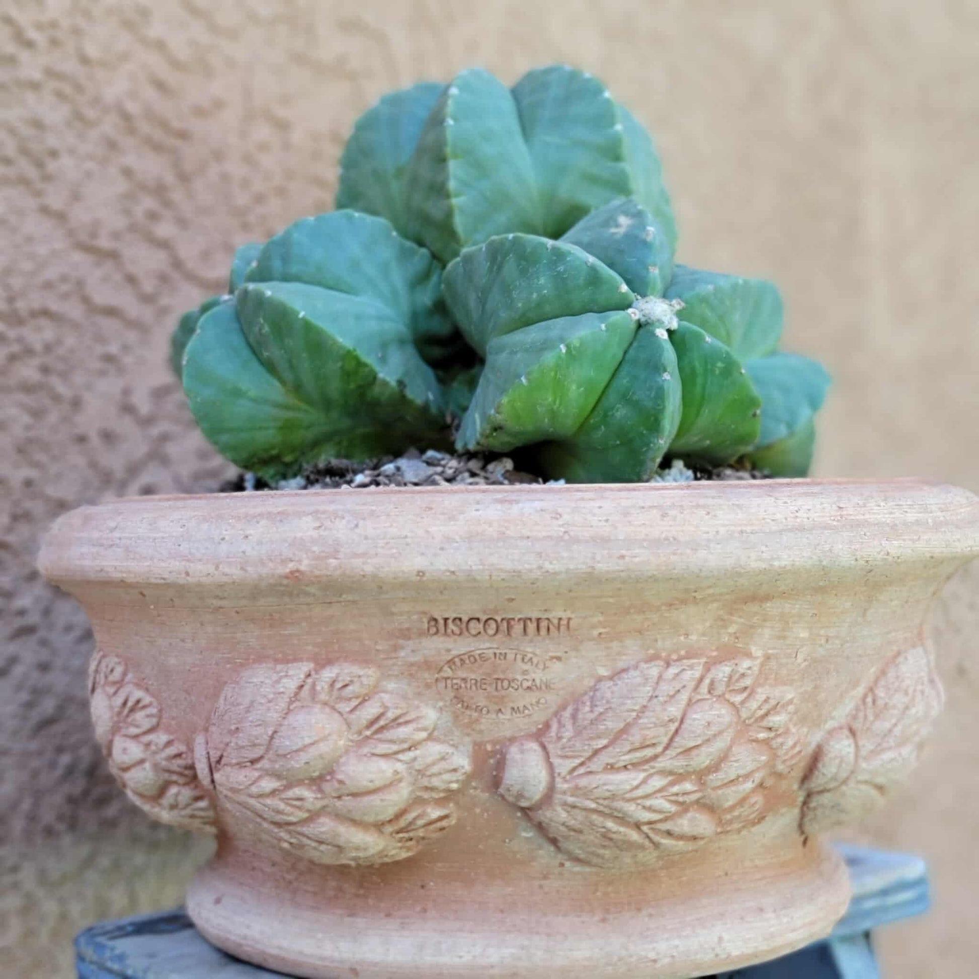 Showcased here in Italian handmade Tuscan terra cotta planter (sold separately).