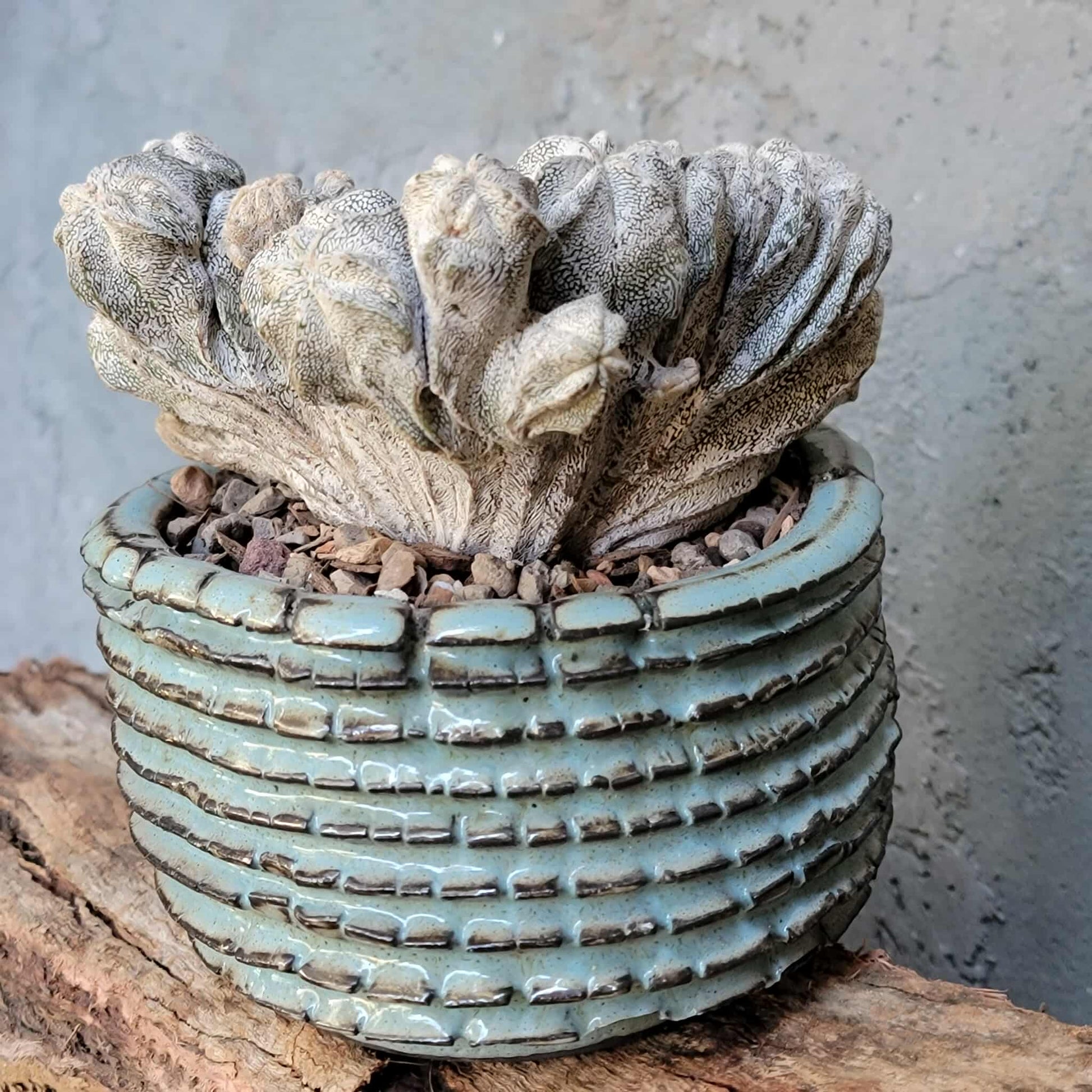 Crested forms of Astrophytum myriostigma are rare, and the Onzuka cristata is a particularly sought-after variation.