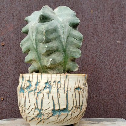 - Growth habit: Young seedlings resemble a standard Bishop's Cap (A. myriostigma). It takes 3 to 7 years for the characteristic "saw teeth" to develop fully. It is a slow-growing plant that can eventually reach a diameter of 5–10 cm and a height of 22–40 cm.
