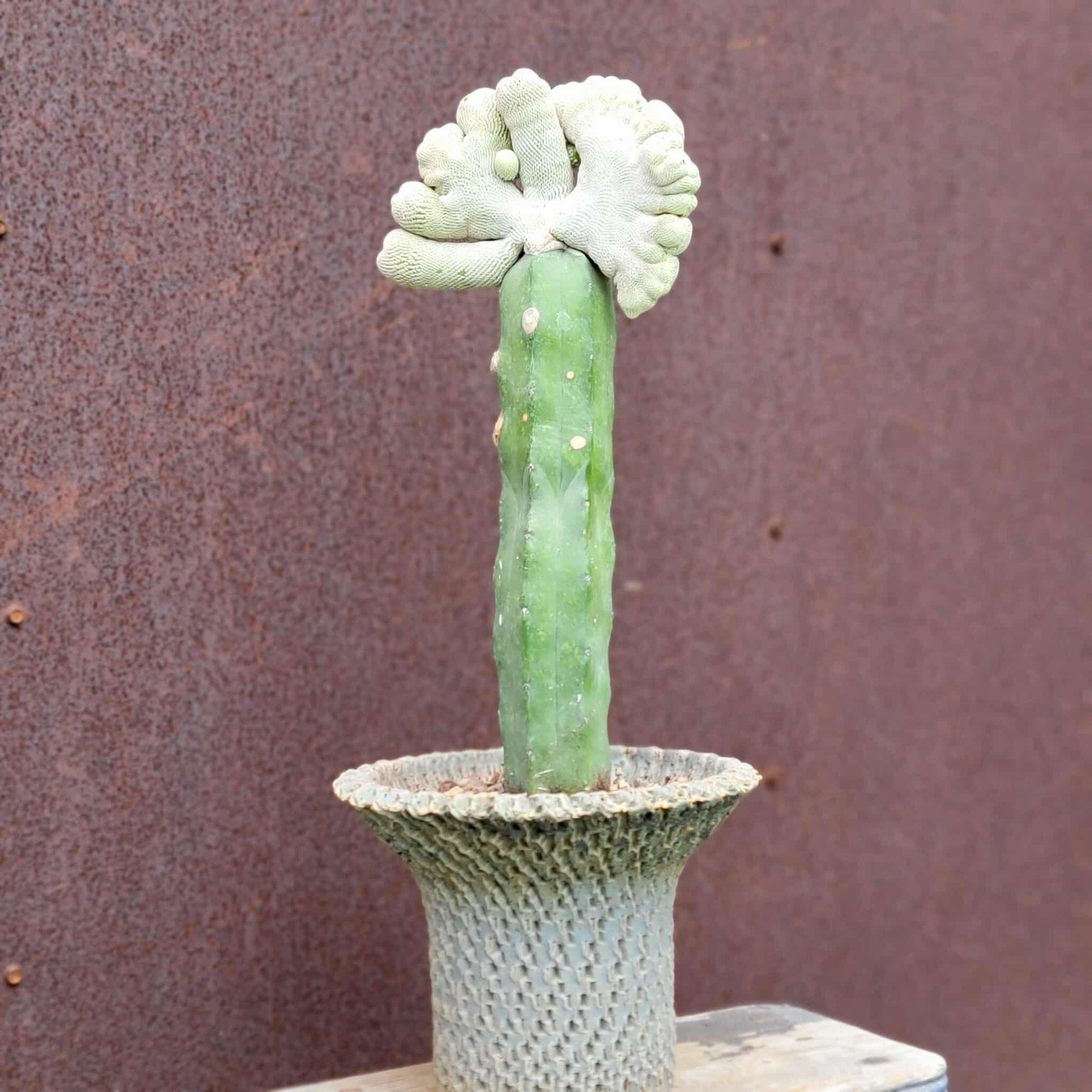 Epithelantha bokei f. cristata is a fascinating crested form of the already unique Epithelantha bokei cactus. It's also known by common names like Crested Ping-pong Ball Cactus, Crested Button Cactus, and Crested Boke's Button Cactus.