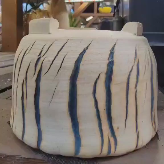 Showcased here in one-of-a-kind handmade pottery (sold separately).