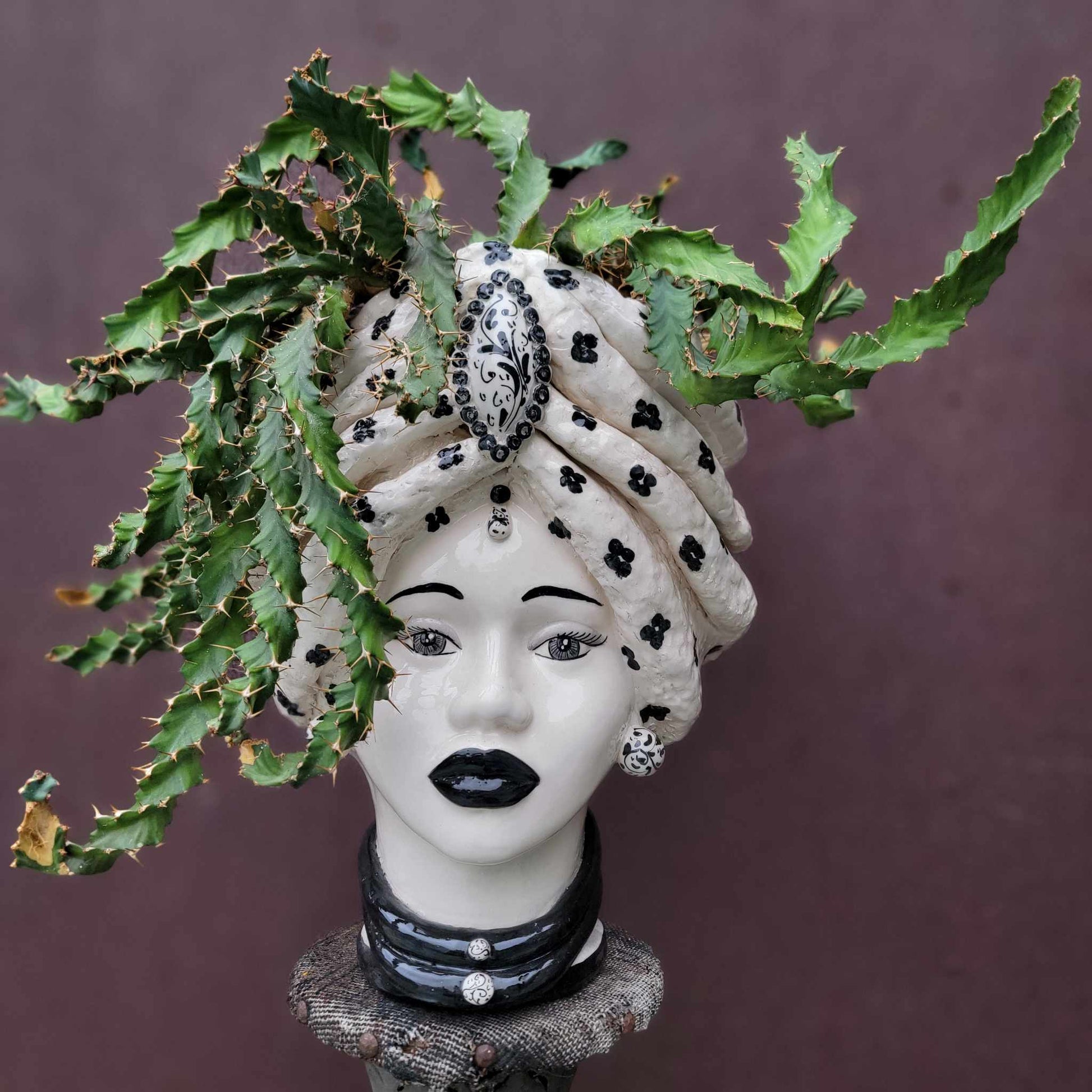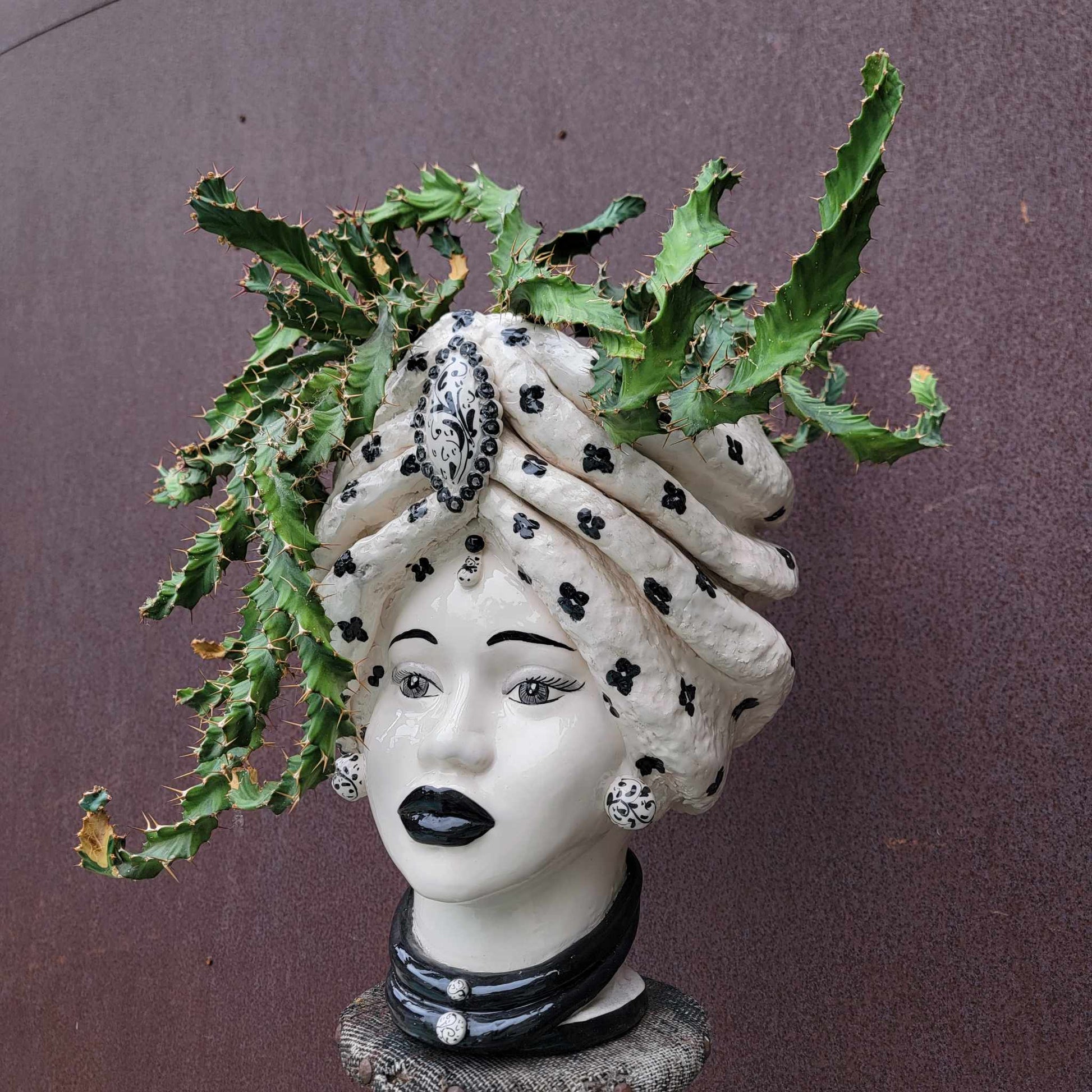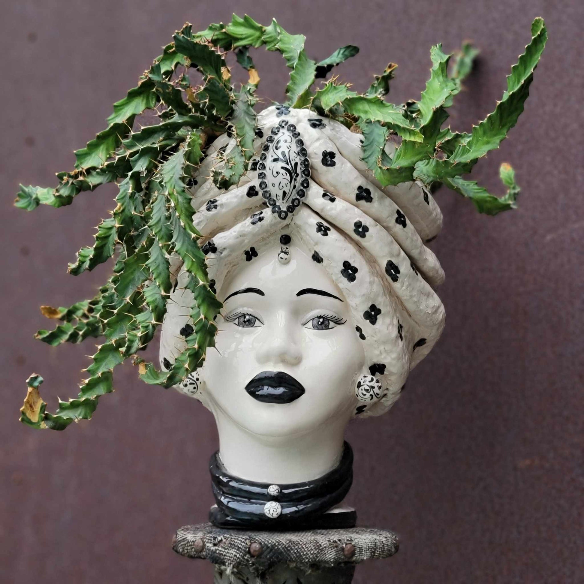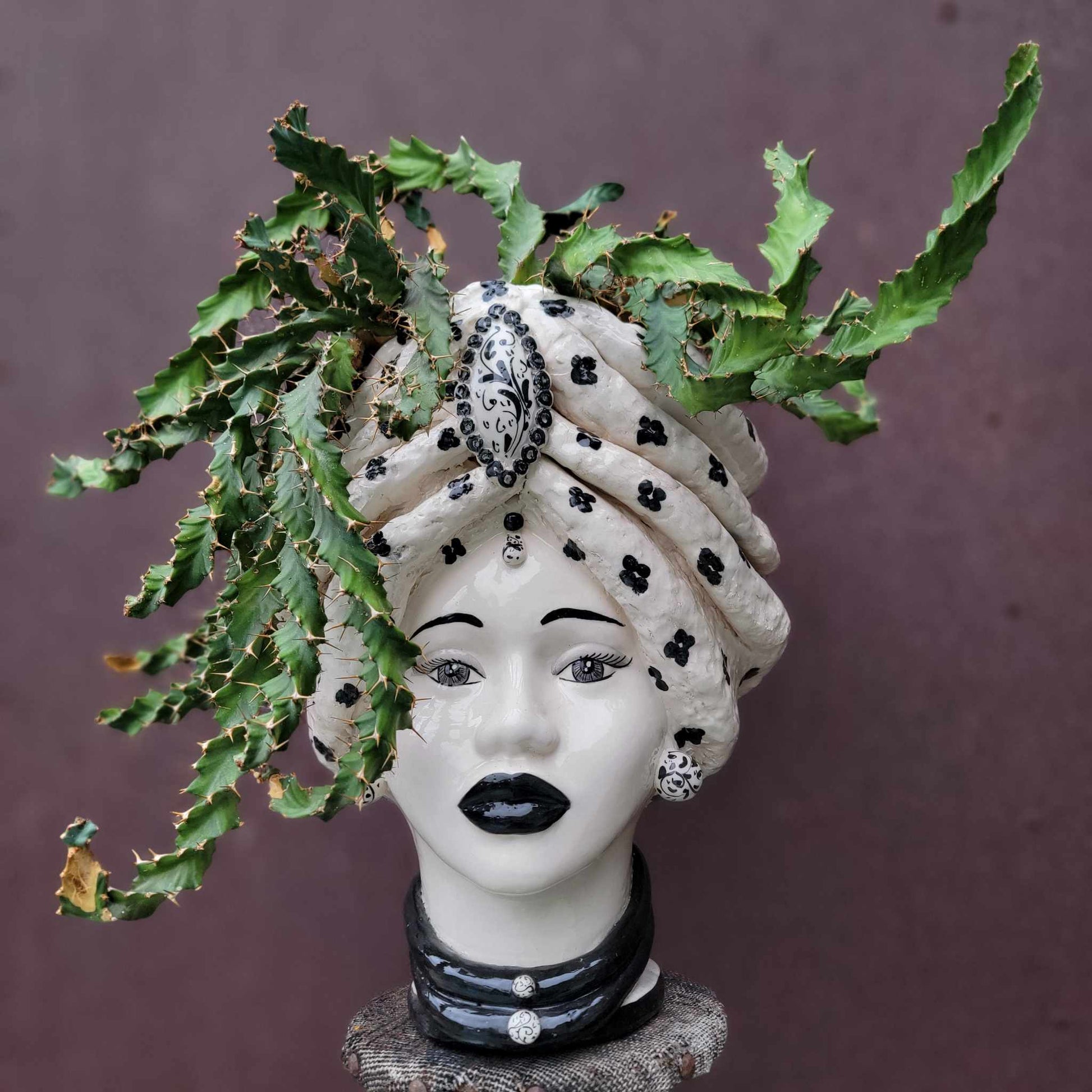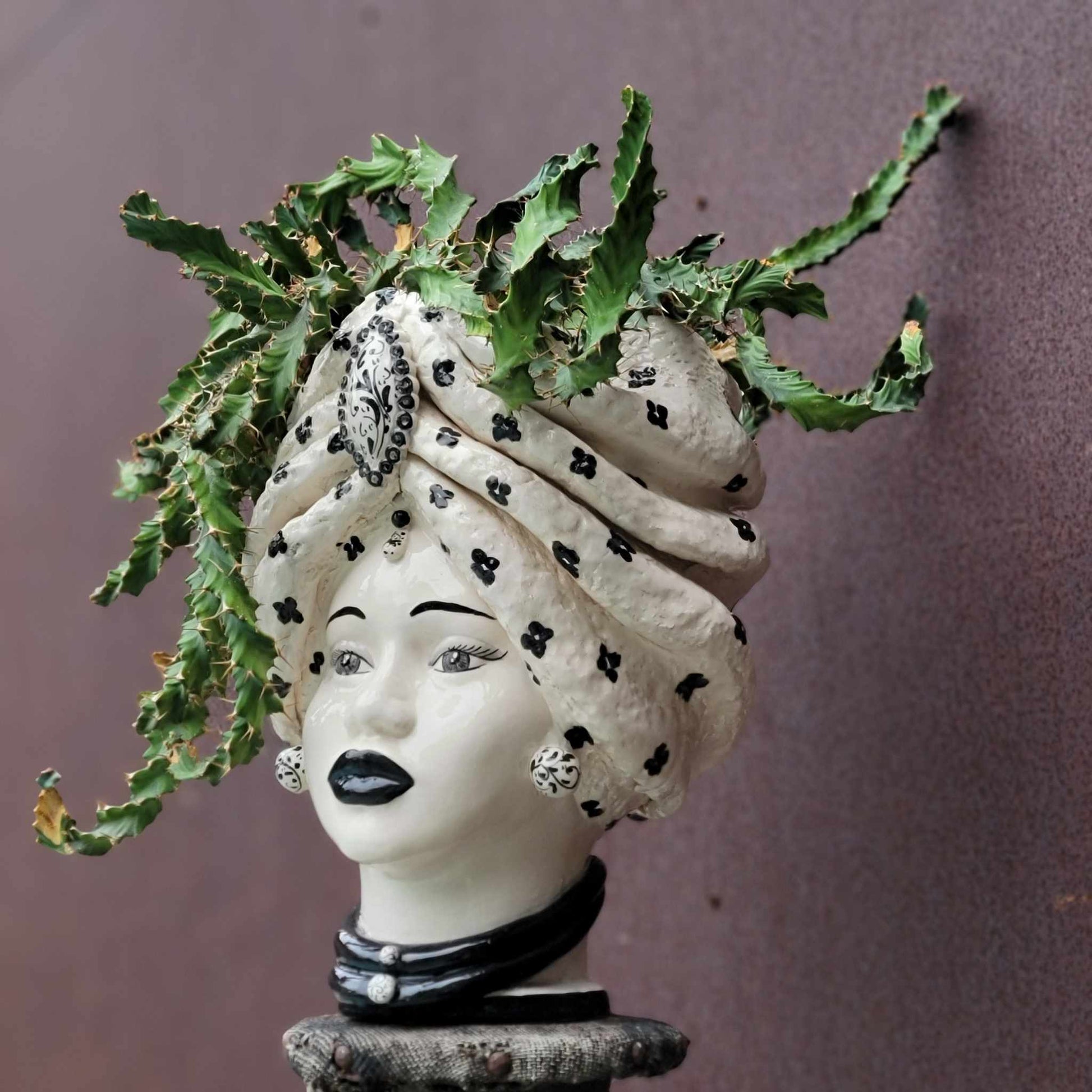 Showcased here in one-of-a-kind Moor's head, handmade in Italy (sold separately).