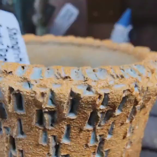 Showcased here in one-of-a-kind handmade pottery (sold separately).