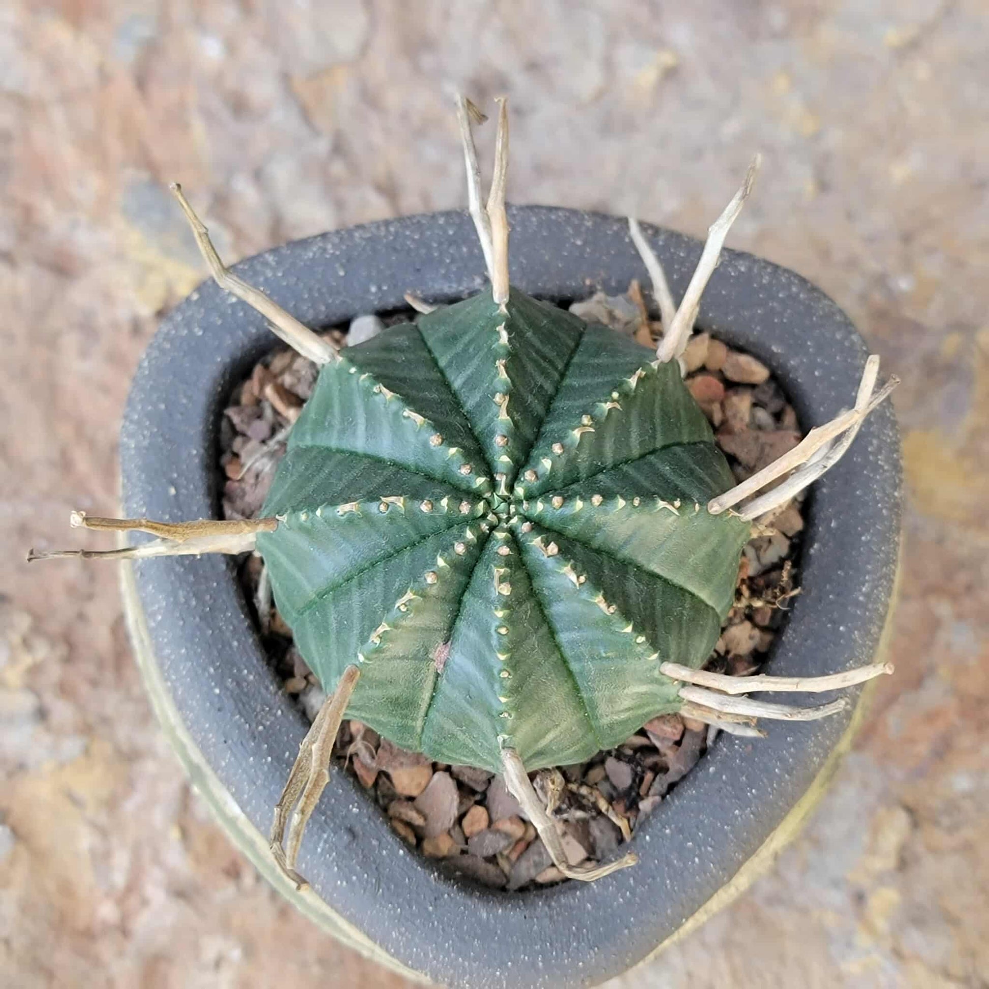 Euphorbia valida is a rare and attractive succulent from South Africa known for its spherical, cactiform stem and persistent, bristly flower stalks.