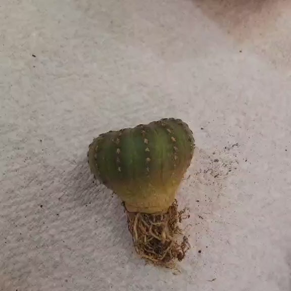 · Distinctive Appearance: The stem is disk-like and flattened, boasting a chocolate brown or dark reddish-green hue with 8-15 flat ribs. Minute, short, black spider-like spines are pressed against the plant body.