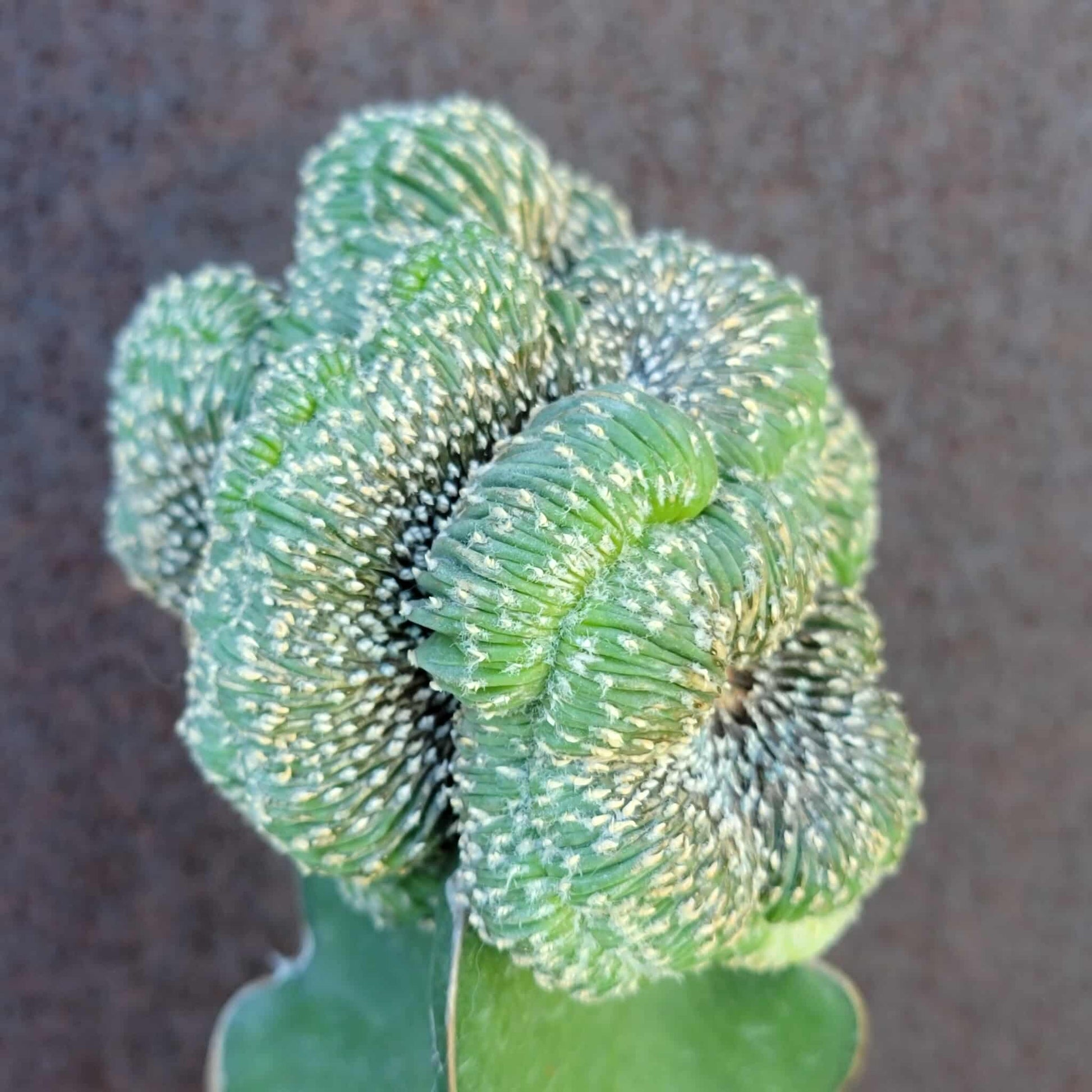 · Grafted for faster development: Due to its slow growth, the Geohintonia mexicana f. cristata is often grafted onto other cacti to accelerate its development.