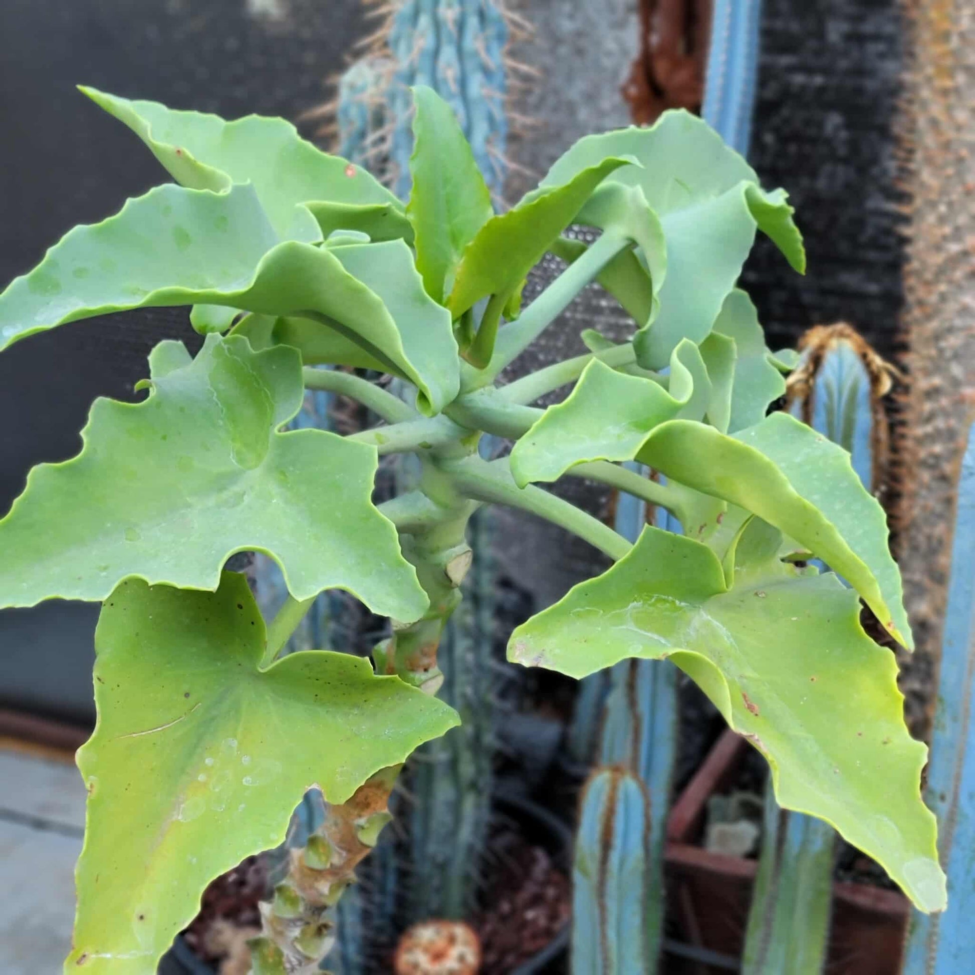 - Growth Habit: A tree-like succulent shrub that can reach heights of up to 12 feet in ideal conditions, though it's often seen smaller in cultivation. Older leaves eventually fall off, revealing an attractive exposed trunk.