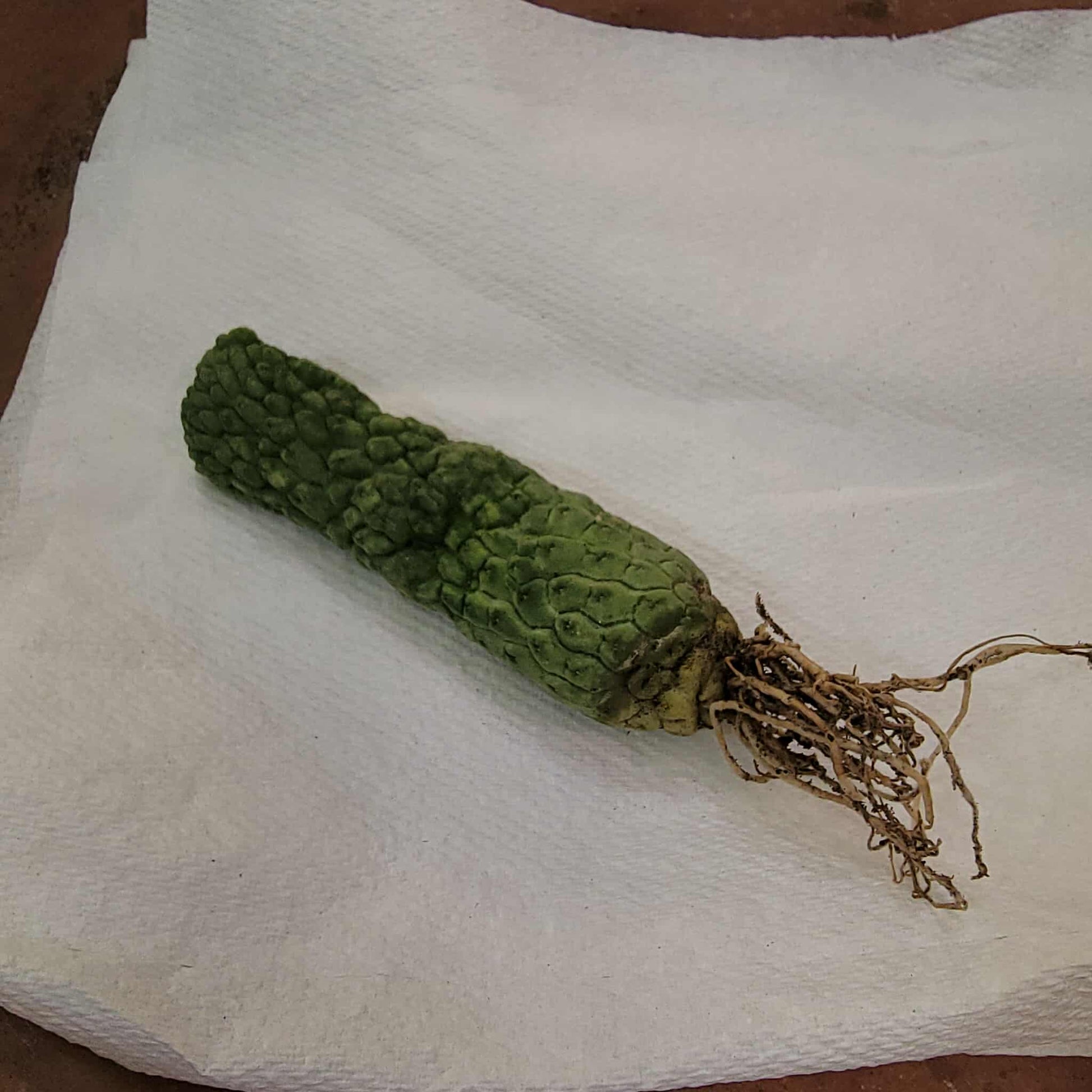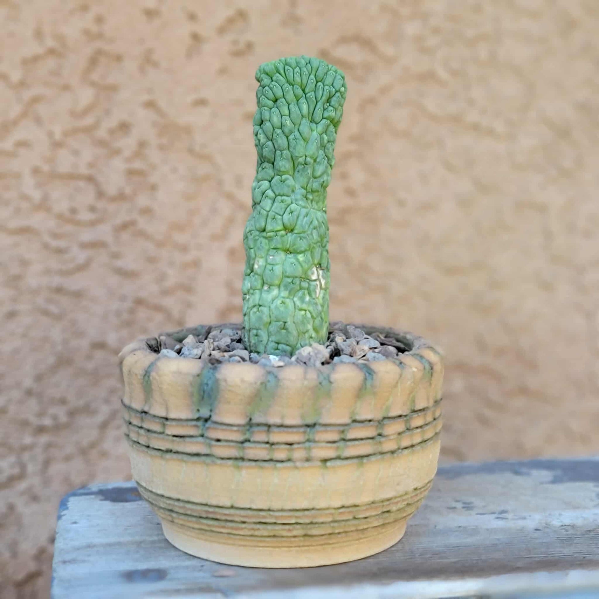 - Appearance: The stem is cylindrical and fleshy, growing 4 to 6 inches (10–15 cm) tall. The surface is covered in polygonal tubercles (blisters) arranged in 12 to 16 rows, giving it a segmented, checkered look. Its coloration ranges from greenish-white to gray-green.