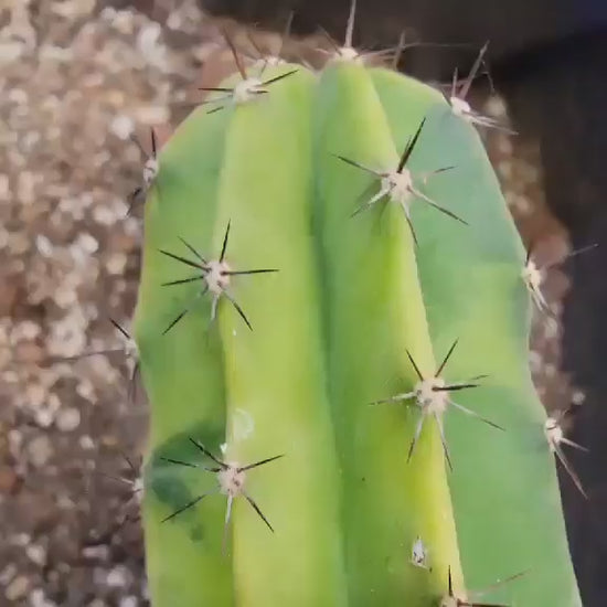 - Spines: Each areole (the small bumps along the ribs) has a few short, straight, brownish-gray spines.