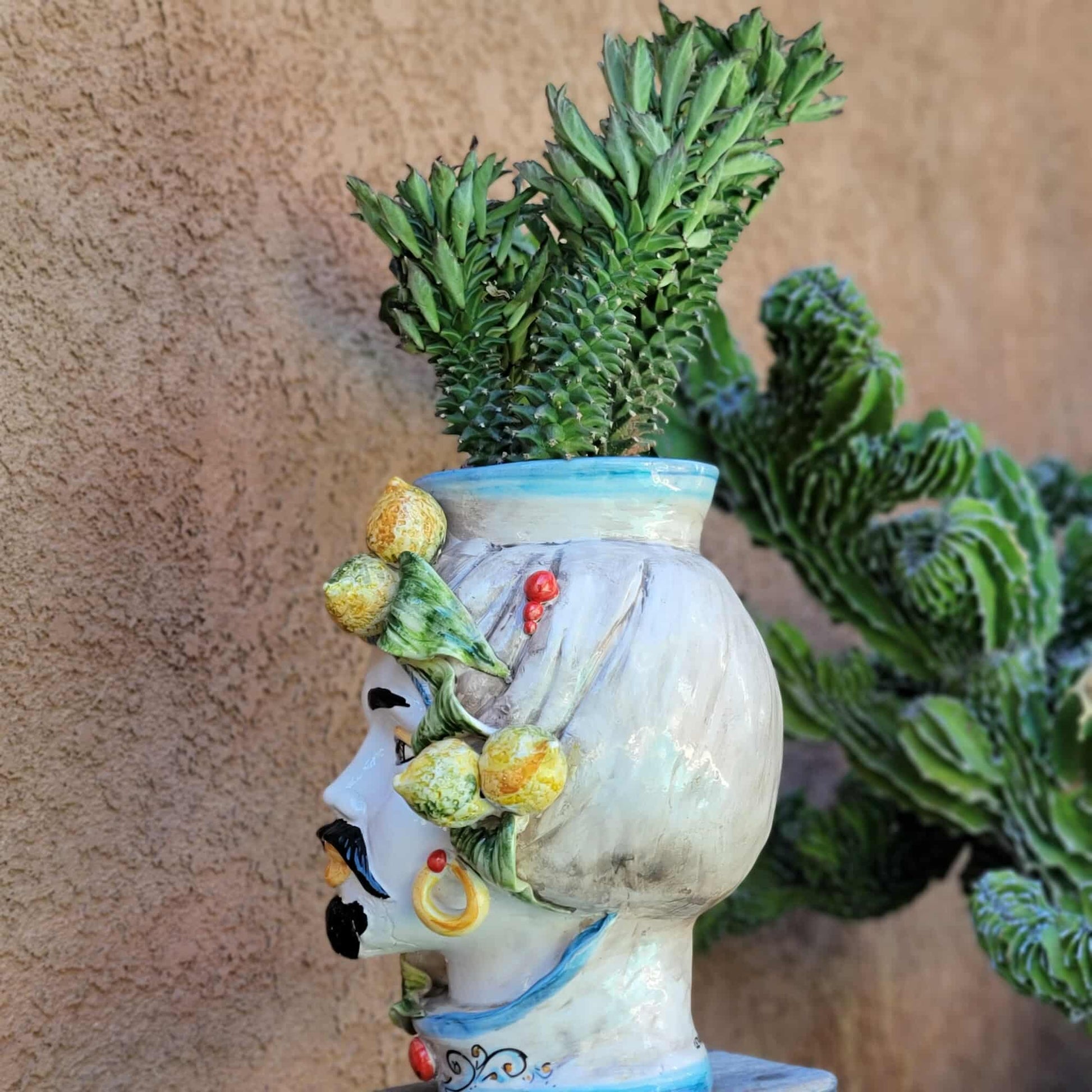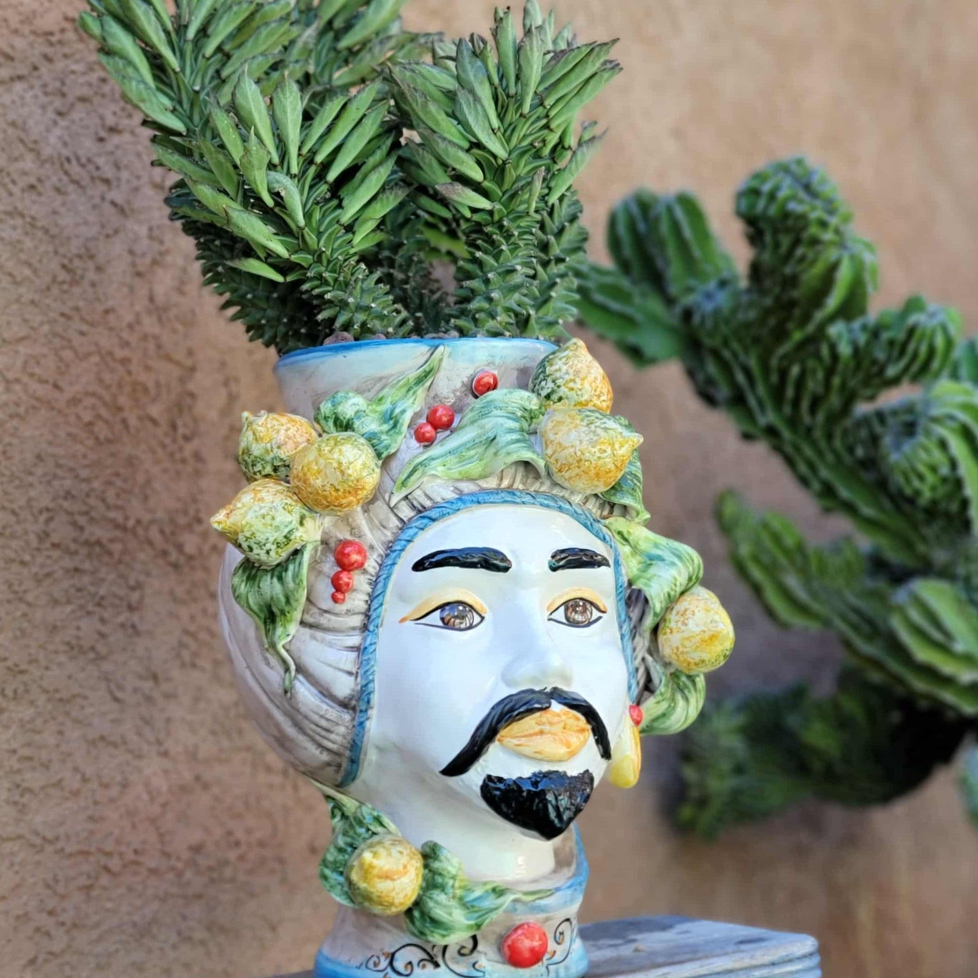 Showcased here in one-of-a-kind Italian handmade Caltagirone Ceramic Moor's Head (sold separately).