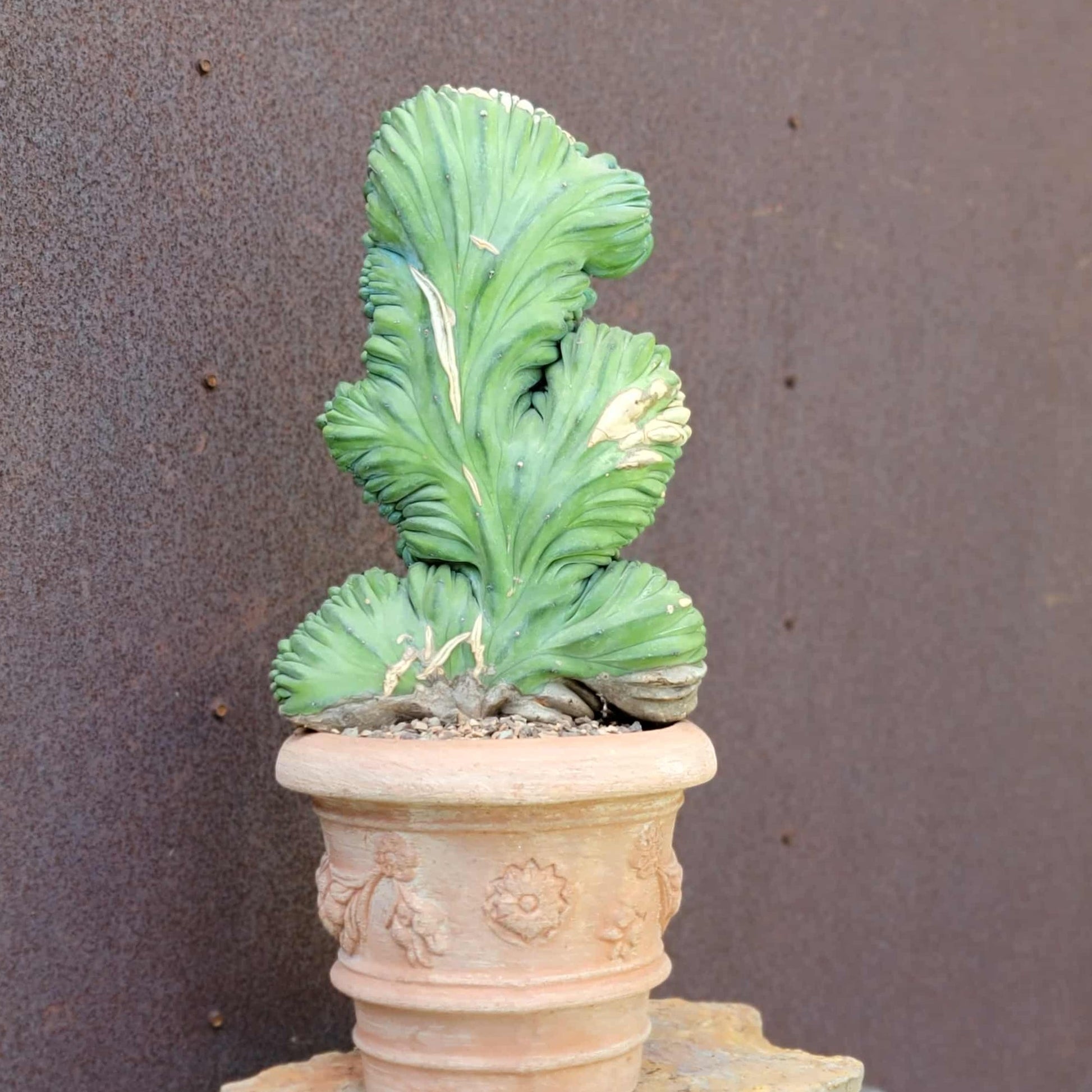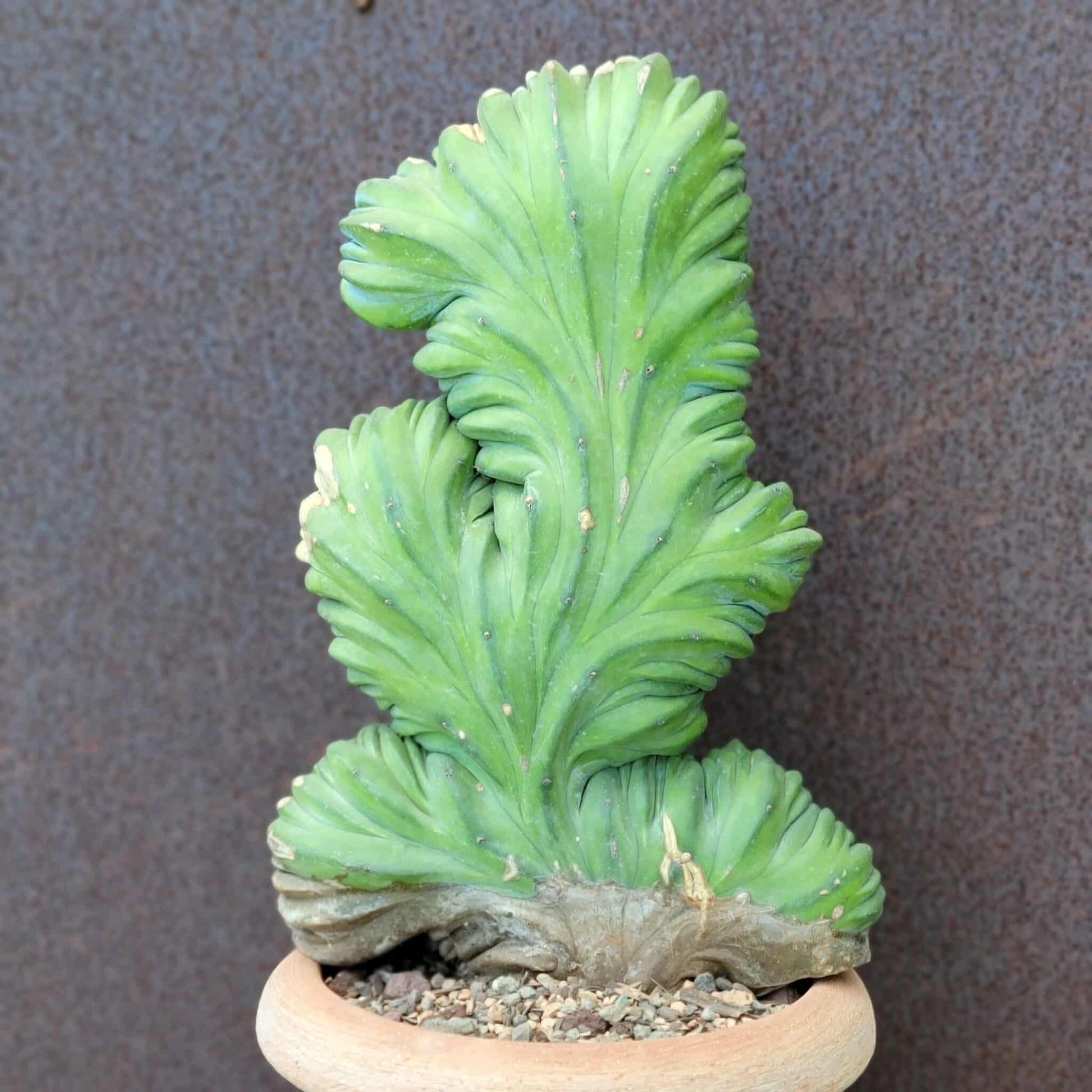 - The "f. cristata" indicates the crested or fanning out growth pattern, where the stems widen and cluster together.