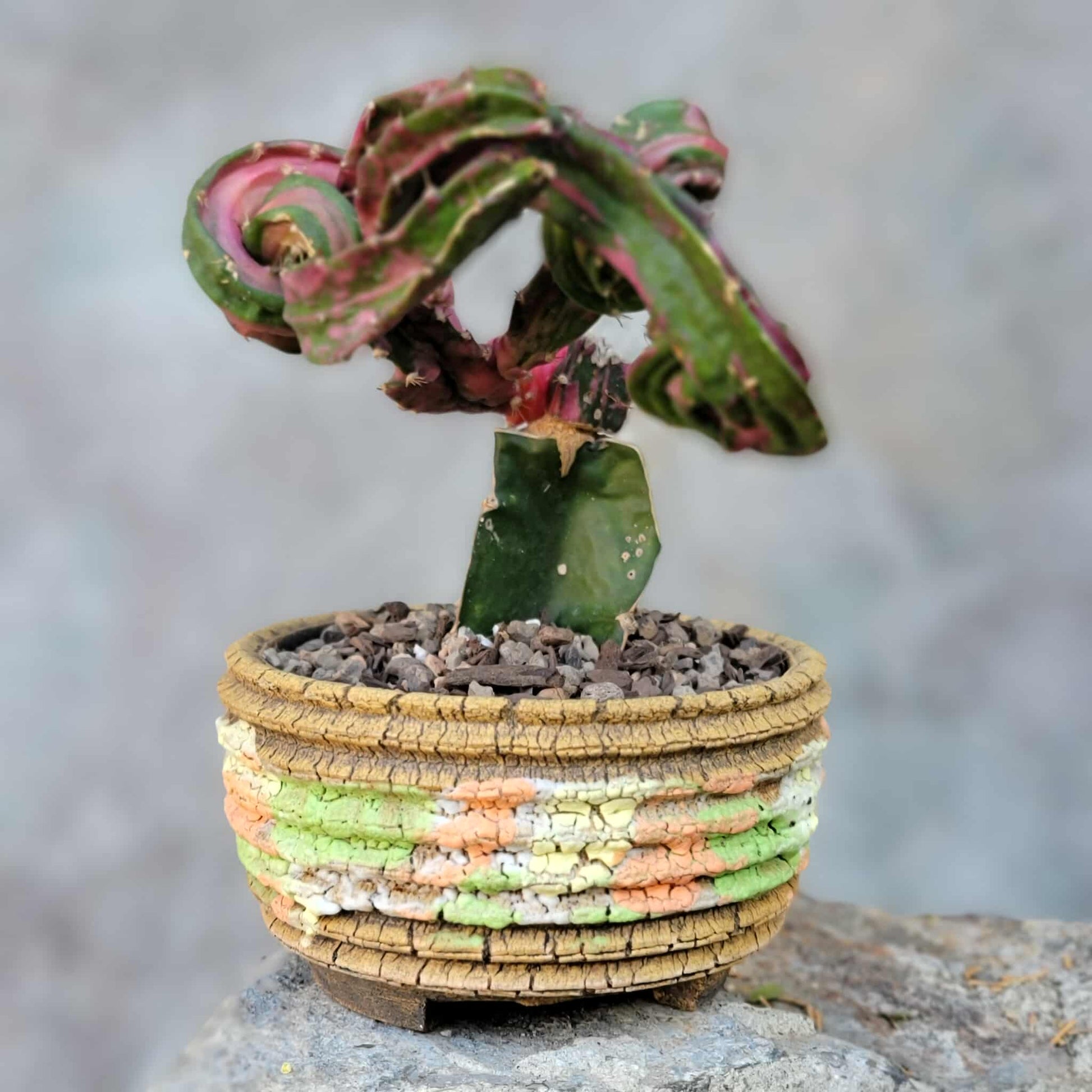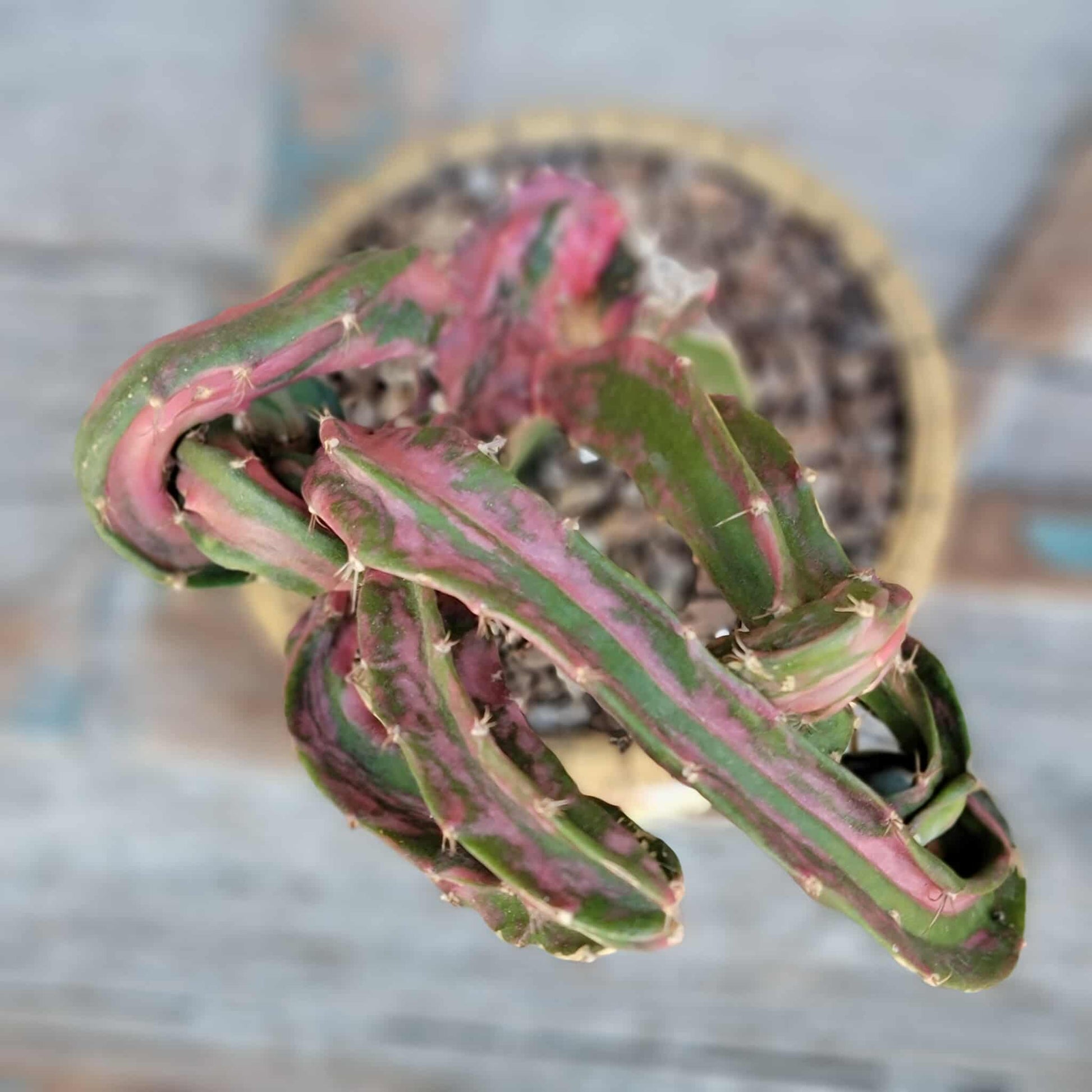 - Unusual Appearance: It's a colorful red and green columnar cactus with a unique and somewhat unstable growth pattern.