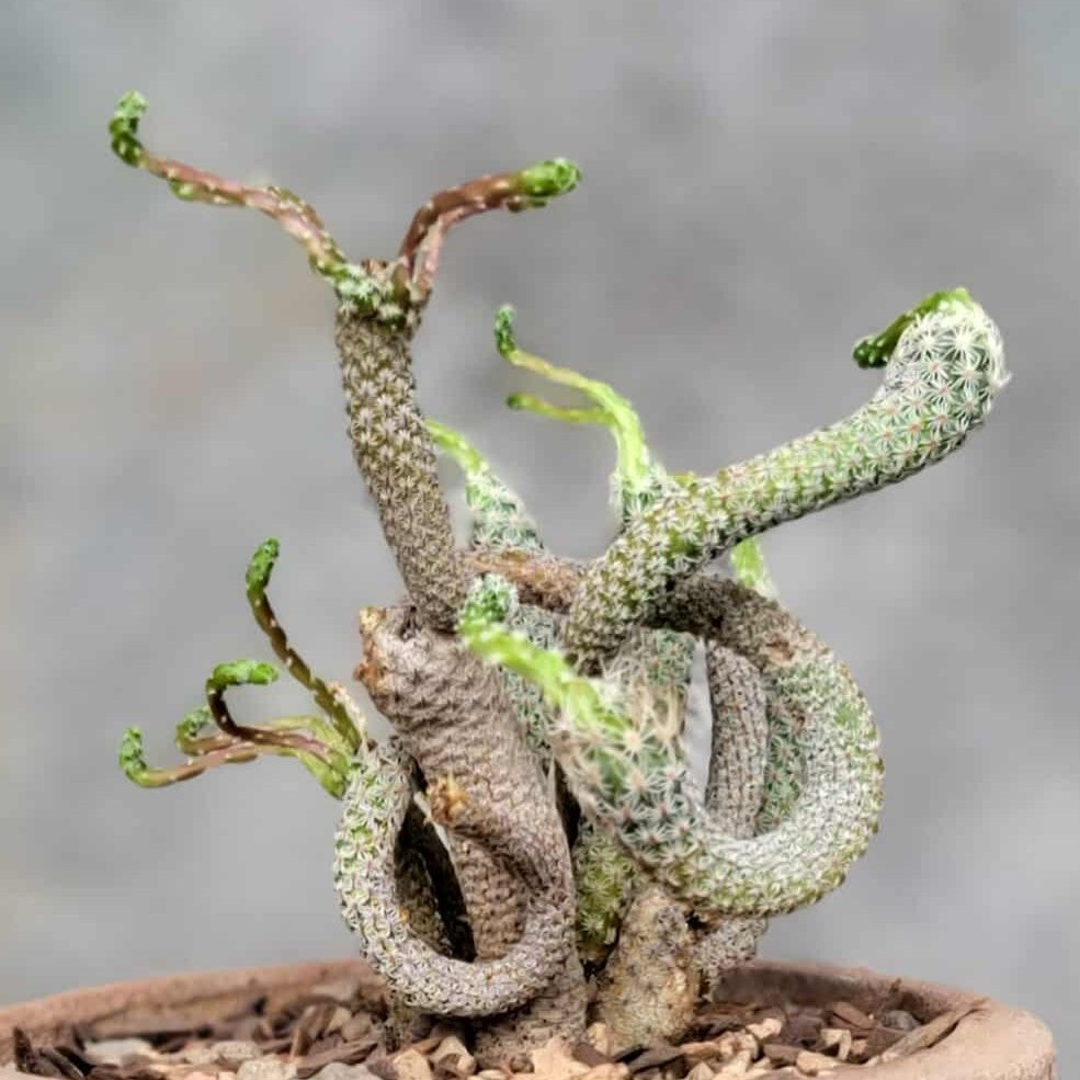 · Spines: Young plants have thin, white radial spines. As the cactus matures, it develops longer, central spines (12–30 mm long) that are wiry and twisted, giving it a fuzzy look.